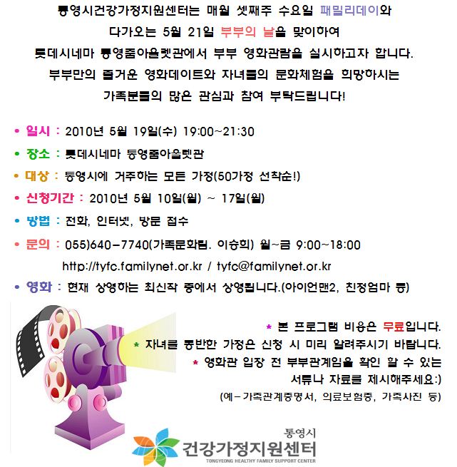 통영시건강가정지원센터 5월 패밀리데이&부부의날입니다.