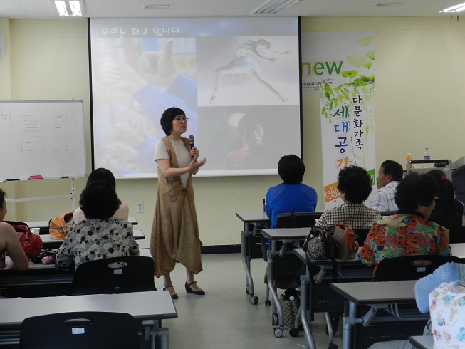 아이를 업고 부모님과 함께 온 여성결혼이민자분들,