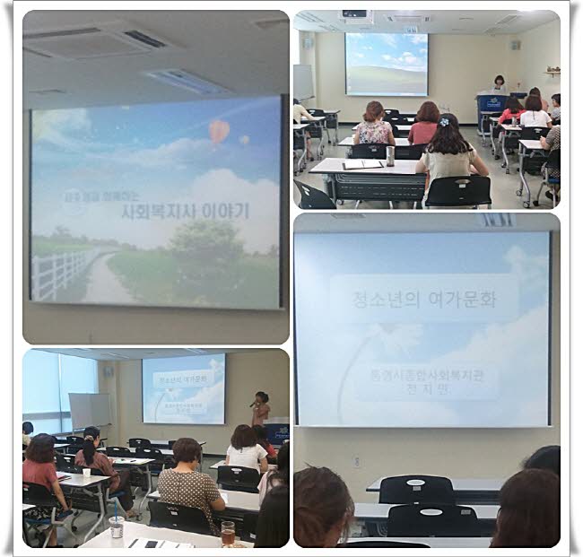 2012.08.21 16:00~17:00 / 교육실우리복지관에서는지역사회 강사 활동을 위한 '1인 1강의'를 진행하고 있습니다.오늘은복지관 복지1과 김혜진 주임님의 '사회복지사 이야기'복지관 복지3과 전지민 선생님의 '청소년의 여가문화'라는 주제로 강의했습니다.