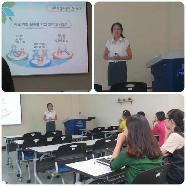 2012.08.28 16:00~16:30 / 교육실우리복지관에서는지역사회 강사 활동을 위한 '1인 1강의'를 진행하고 있습니다.오늘은통영시건강가정지원센터 가족상담팀 김하윤 선생님의 '미성년자녀를 둔 부모교육'라는 주제로 강의했습니다.