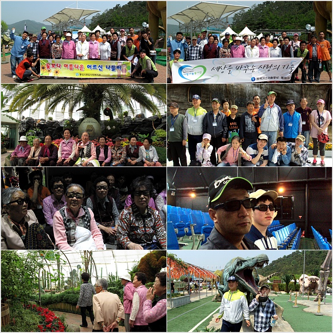 2012.05.07재가어르신여가지원프로그램 할머니들과장애인보호작업장, 밀알의집 장애인들과 함께고성공룡세계엑스포에 다녀왔습니다.한국가스기술공사에서 후원해 주시고 함께 해주셨습니다.어르신들과 장애인분들과 함께 즐거운 시간이 되었습니다^^