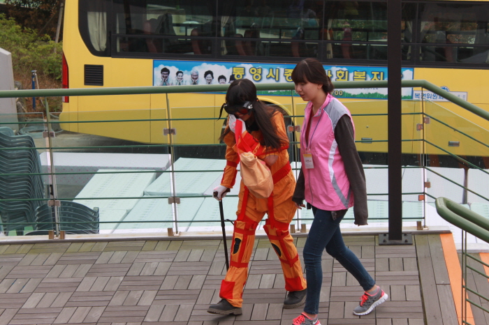 노인체험과 장애체험을 하면서 그들의 입장을 겪어보며