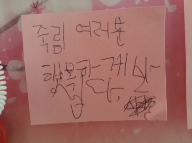 아이들, 어르신들, 삐뚤 빼뚤한 글씨, 짧은 문구지만 훈훈함이 느껴지나요???