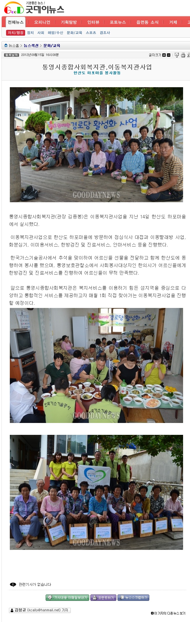[굿데이뉴스] 통영시종합사회복지관, 이동복지관 사업