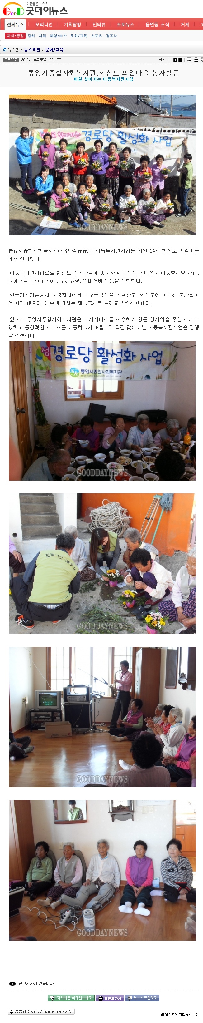 [굿데이뉴스]통영시종합사회복지관,한산도 의암마을 봉사활동