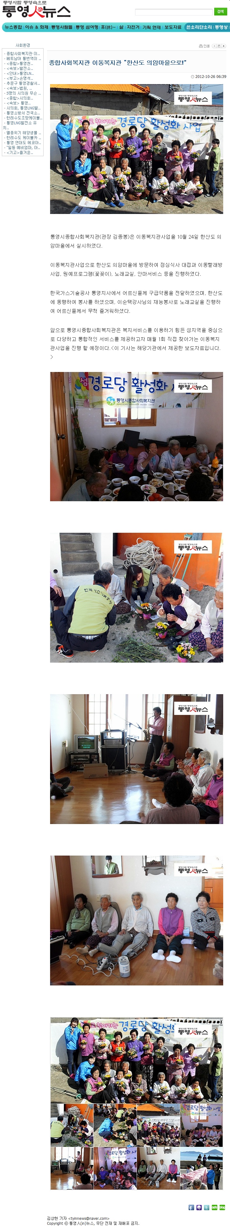 [통영인뉴스]종합사회복지관 이동복지관 “한산도 의암마을으로!”
